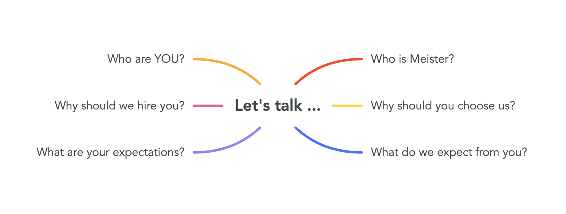 You’ll also have a chance to clarify a few administrative points, such as your potential starting date, your salary expectation, or any relocation or visa issues. You’ll also learn about Meister’s flexible work options, where you choose what works best for you.
